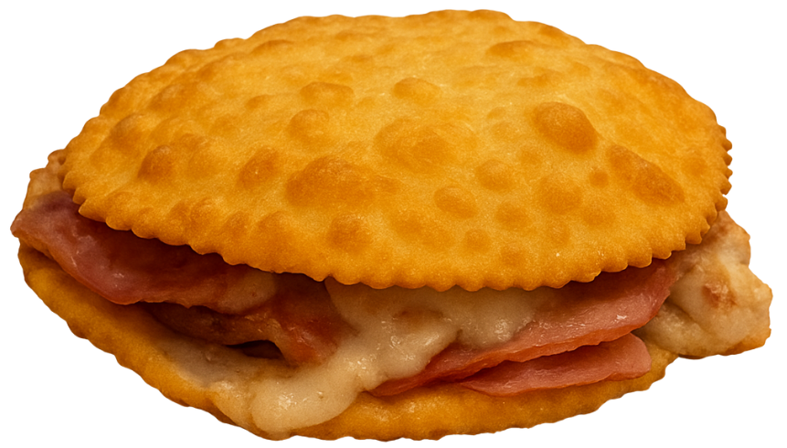 Duas massas recheadas com queijo, milho, presunto e queijo, catupiry e frango.